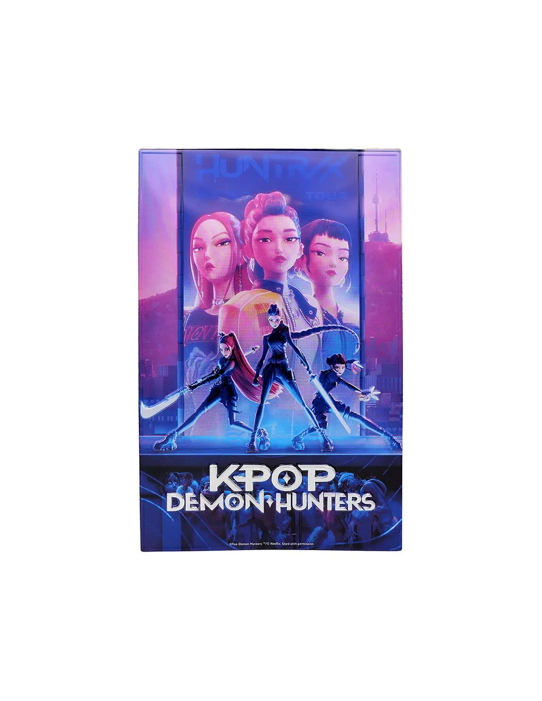 Imprimée en haute définition, cette plaque en aluminium de 30 × 20 cm présente un design embossé qui fait ressortir chaque détail et mouvement. Elle met à l’honneur Zoey, la chanteuse attachante et positive du trio Huntrix dans KPop Demon Hunters.